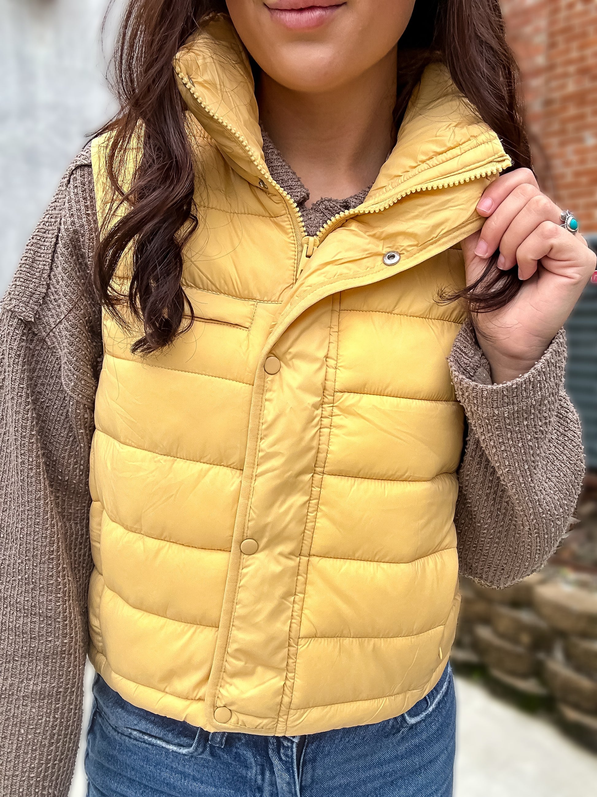 Say hello to your new favorite layering piece! The Beth Cropped Puffer Vest brings all the cozy warmth of a puffer with a fun, flattering, modern twist. This vest features a cheerful butter-yellow color that instantly brightens any outfit — perfect for adding a pop of personality on chilly days.