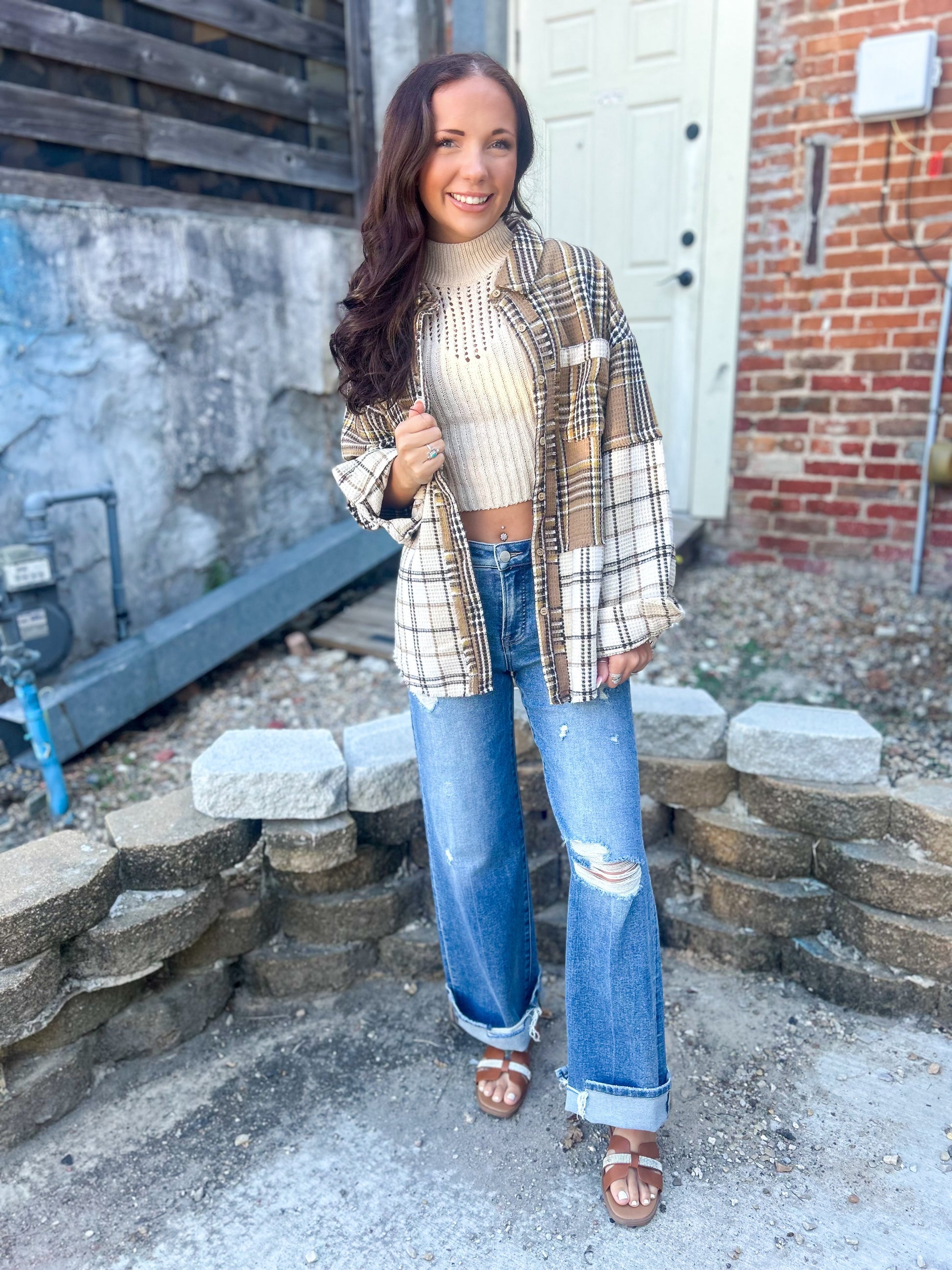 The High Noon Sleeveless Top is a chic, neutral knit that blends western charm with modern style. Featuring a mock neck and a sleeveless silhouette, this ribbed top includes subtle open-knit detailing across the chest for a breathable, textured look. Its fitted, cropped cut makes it perfect for pairing with high-rise denim or skirts — easy to dress up or down for any season.