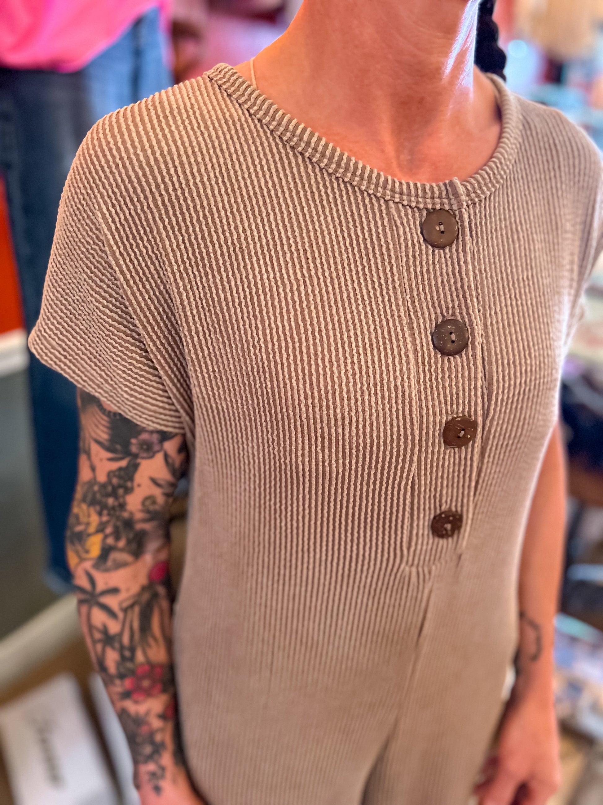 Design: Features a button-down front detail, short sleeves, and a wide-leg silhouette for a chic, laid-back look.