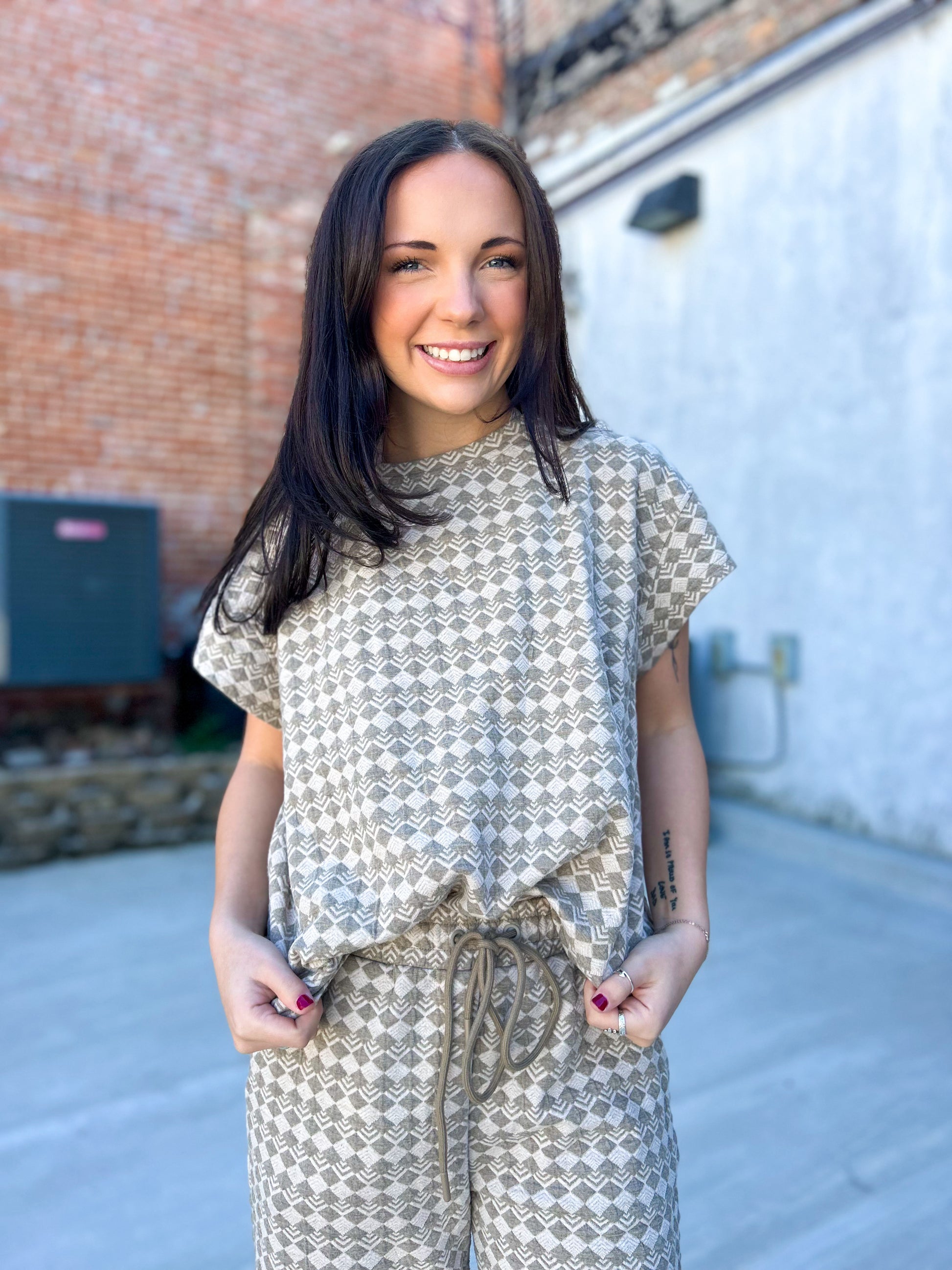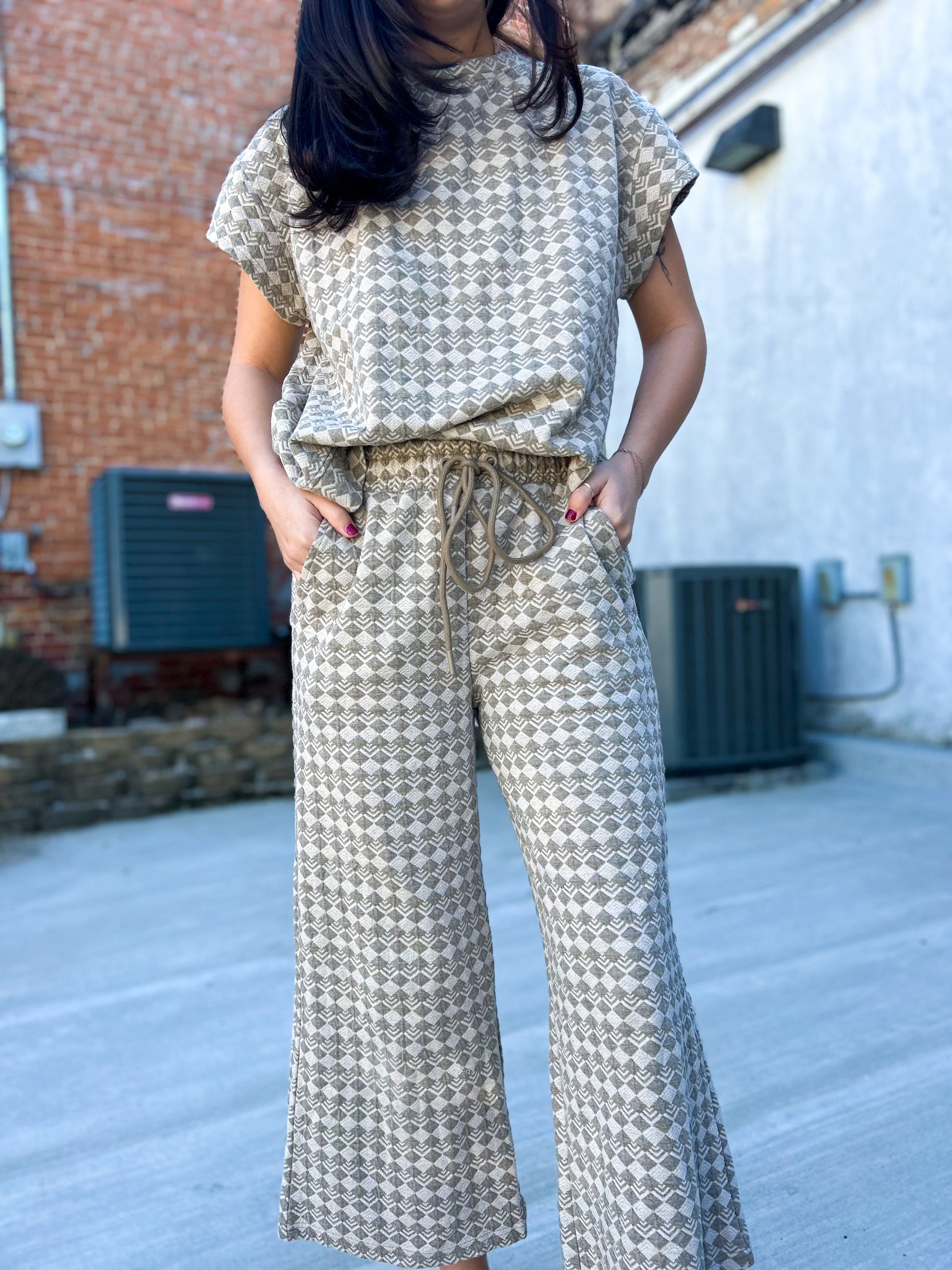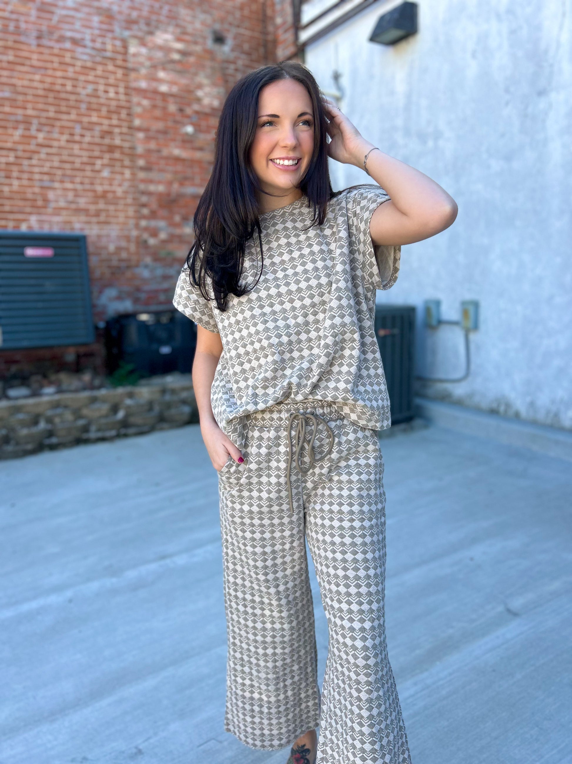 Effortless. Elevated. Made to stand out without trying too hard — the Western Icon Set is the kind of outfit that does all the work for you. Featuring a relaxed, easy fit with subtle western-inspired pattern detail, this set gives you that polished but laid-back look we all love. The neutral tones make it easy to style now and transition later — wear it together for a statement moment or mix and match with your favorite denim and basics.